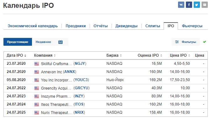 После выбора посредника необходимо определиться, в какие компании инвестировать деньги. Список предстоящих размещений есть в специальных календарях. Их можно найти на сайтах.