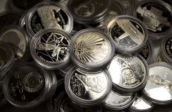 Единственным эмитентом является Банк России. А купить монеты можно в коммерческих банках, частных компаниях и на аукционах. В отличие от слитков инвестор не будет дополнительно оплачивать НДС в 20 %.
