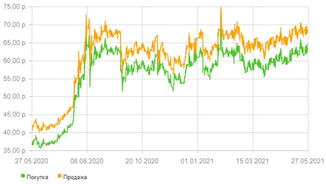 - подходит инвестору с небольшим капиталом, ведь цена 1 г равна всего 67,72 руб. (на 27.05.2021);