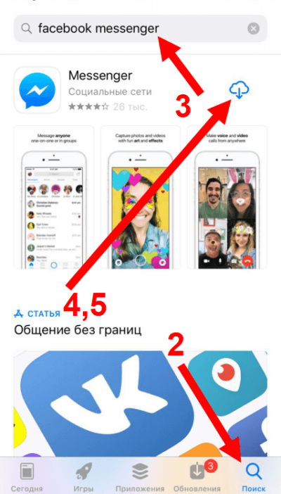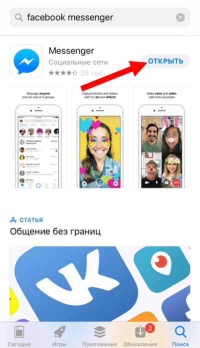 Напишите в строке поиска «Facebook Messenger» (без кавычек).