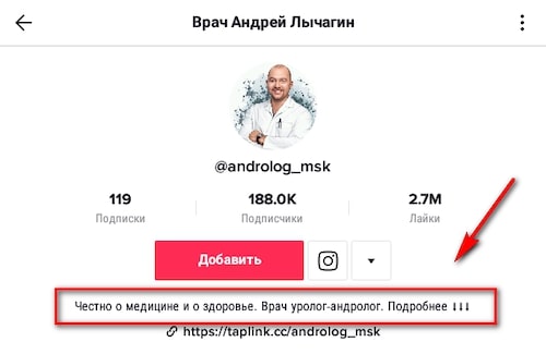 На первом этапе, когда вам еще не дали возможность добавлять ссылки, можно написать в профиле свой логин в соцсетях, название канала на Ютуб или адрес личного сайта, чтобы вас могли найти за пределами Тик-Ток. В дальнейшем, когда получится оставлять кликабельные ссылки, эту информацию можно будет убрать из описания и просто оставить ссылку.