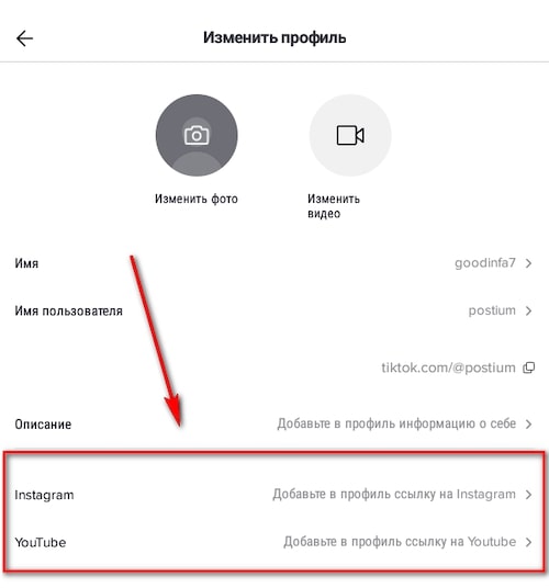 Еще ниже есть пункты «Добавьте в профиль ссылку на Instagram» и «Добавьте в профиль ссылку на YouTube» — потребуется подтвердить ссылку, через авторизацию на выбранной платформе.