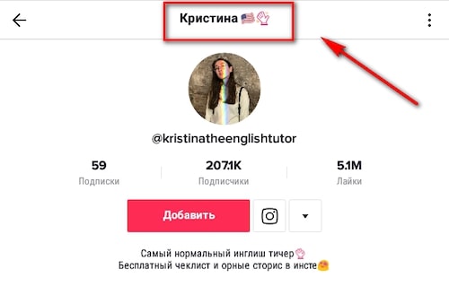 Если это аккаунт специалиста — аналогично, подойдут настоящие имя и фамилия или имя + вид деятельности. Пример — Кристина (ник @kristinatheenglishtutor), репетитор английского языка.