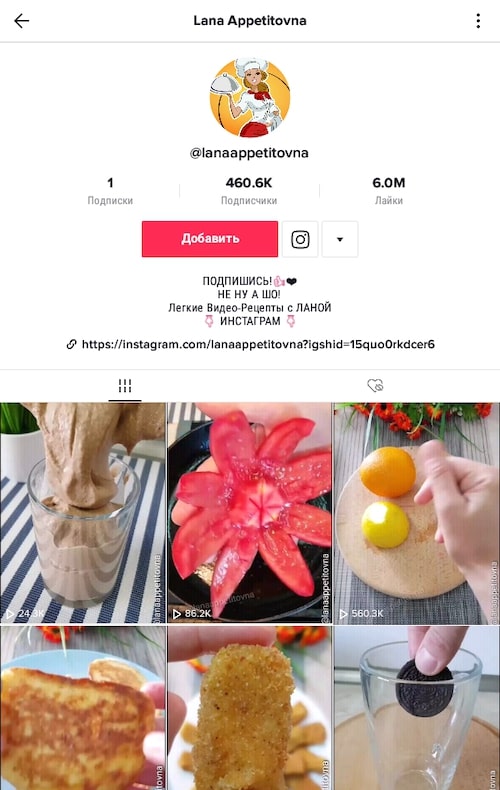 Если это тематический профиль, пусть имя отражает суть видеороликов. Например, вы выкладываете рецепты, можно назвать аккаунт «Готовим с Машей» или «Кухня наизнанку». Пример — Юля Жарит, аккаунт с рецептами.