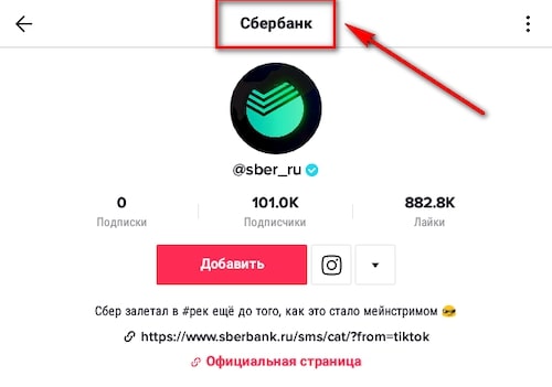Для аккаунта бренда пишем название бренда. Пример — Сбербанк, аккаунт российского банка.