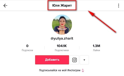 Имя пользователя в Тик-Ток, он же ник — это слово после знака собачки @. Он пишется латинскими буквами и отображается в ссылке Тик-Ток. Количество символов — до 24.