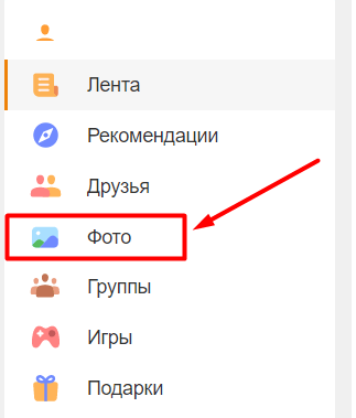 Загрузка через специально предназначенный раздел на сайте – это самый привычный и логичный способ (по нашему мнению). Для закачки вам необходимо авторизоваться на ok.ru и перейти в фотораздел. Попасть туда можно, кликнув на одноименный пункт в главном меню.