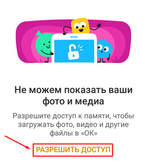 Если вы никогда раньше не пользовались приложением для добавления медиафайлов в Одноклассники, то вам для начала придется разрешить доступ к памяти телефона.
