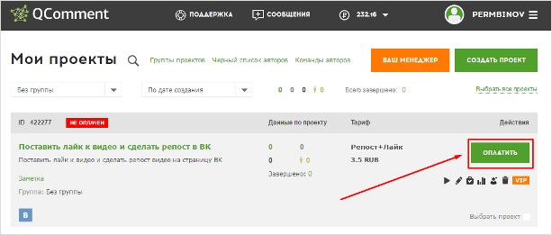 Шаг 4. Нажимаете “Создать проект”. После того, как проект будет создан, вам нужно будет его оплатить.