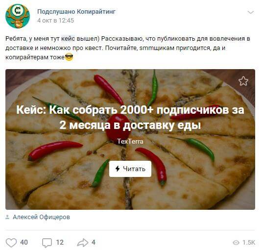 Пример опубликованного кейса в паблике на 10 тыс. подписчиков