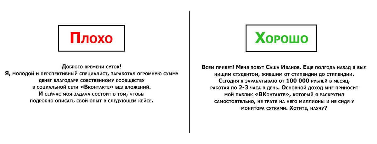 Не забывайте также и о тизерных деталях. Используйте цифры («Как я запустил юмористический паблик ВКонтакте и собрал 10 000 подписчиков за неделю»), говорите о материальной выгоде («Как я ушел на фриланс и стал зарабатывать в 3 раза больше, чем в офисе»), играйте с парадоксами («Как я уничтожил свой бизнес и стал миллионером»). Небольшой налет «продающести» не помешает.