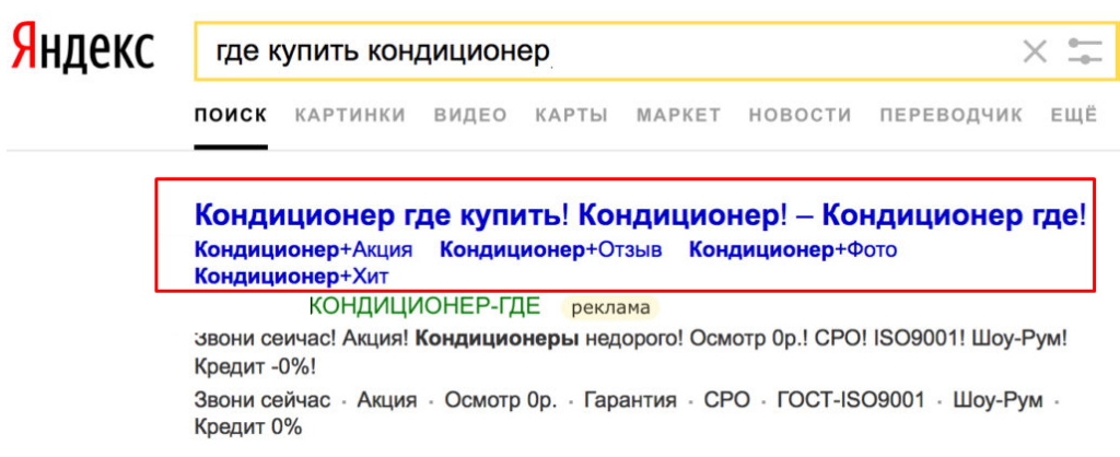 В Яндексе ключевые слова из поискового запроса в заголовках объявлений выделяются жирным шрифтом: