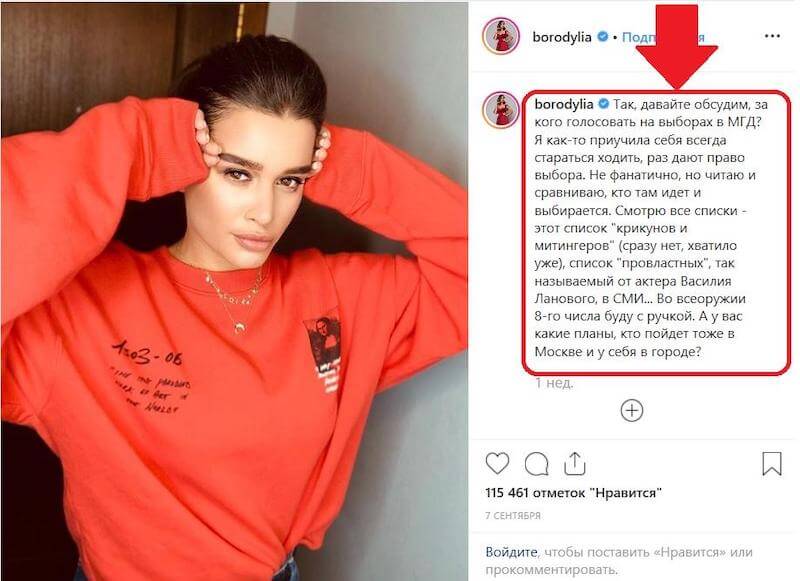 Пример вовлекающего поста в Инстаграм