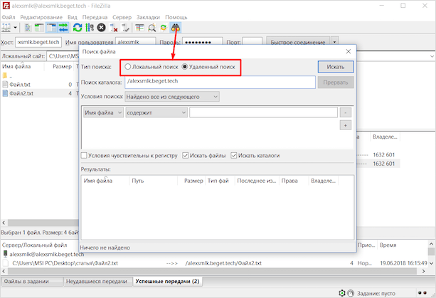 Иногда файлов на удаленном хосте бесчисленное множество. В таком случае нам может помочь встроенный инструмент поиска с расширенным типом настроек. Как вы можете видеть на скриншоте, возможностей здесь по-настоящему немало.
