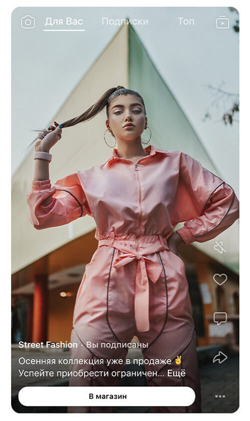 Рекламу в клипах может добавить любое сообщество ВК. Она выглядит, как обычный ролик из клипов с той разницей, что в нижней части находится кнопка для целевого действия. Есть также название бренда и короткое описание.
