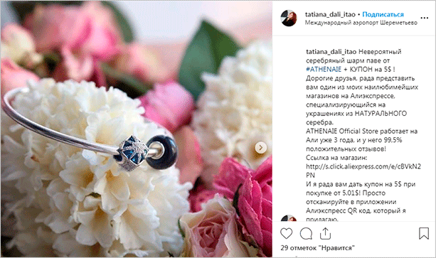 Плюсом такого способа является личный авторитет человека. Его подписчики воспринимают рекламу как личную рекомендацию, что положительно влияет на результаты кампании.
