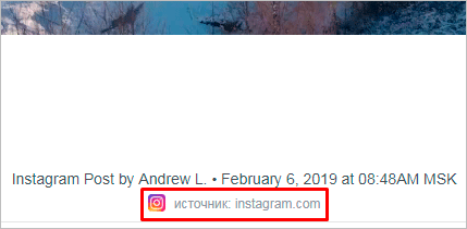 - аккаунт в Инстаграме часто связывают с профилем в Facebook, поэтому в них публикуются одни и те же записи, в которых виден юзернейм. Под такими постами появляется приписка со ссылкой на источник.