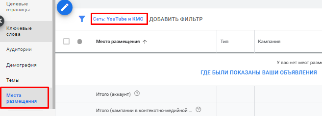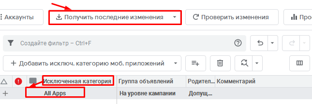 Исчезли два пункта списка — «adsenseformobileapps.com» и «Баннеры в мобильных приложениях GMob», отвечавшие за показы рекламы КМС в приложениях. Теперь все без исключения кампании получают трафик из этих мест размещения.