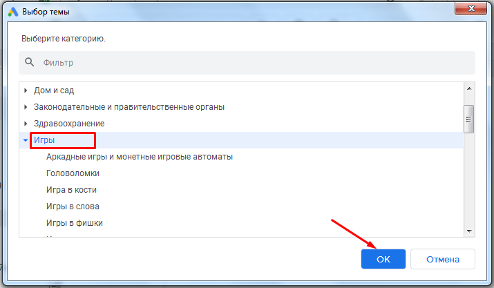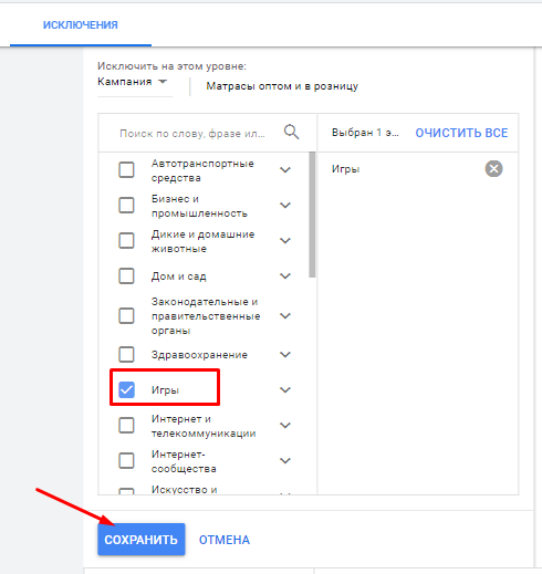 Вы можете исключить из таргетинга весь контент, относящийся к тематике «Игры».