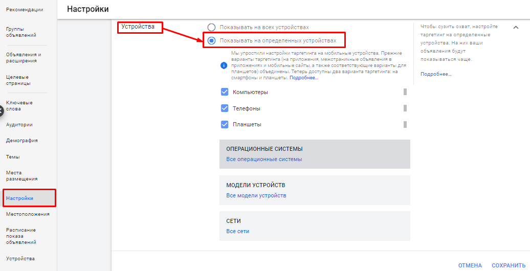 Раньше при настройке кампаний рекламодатель мог отключать рекламу в: