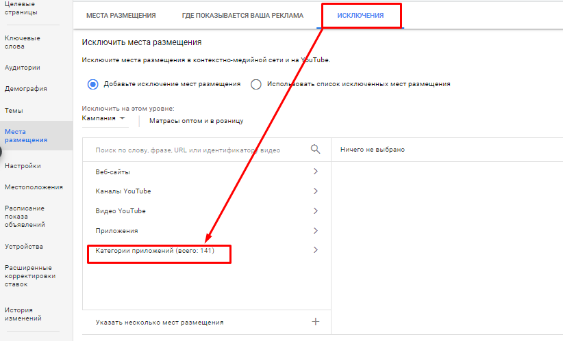 Выберите все категории приложений. Это позволит заметно сократить охват приложений. Трудность в том, что в Google Ads все приложения разделены на 141 категорию, и придется долго проставлять галочки