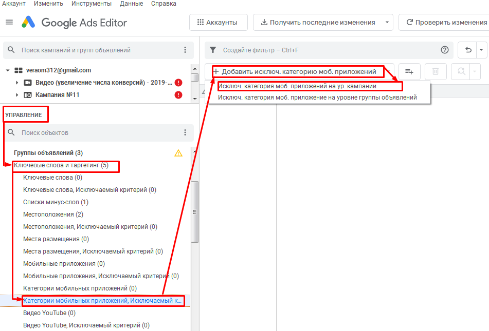 Еще один вариант отключить показ рекламы в приложениях — использовать Редактор Google Ads.
