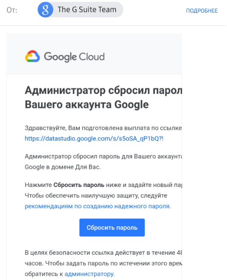 Вот пример подобного письма от якобы Google