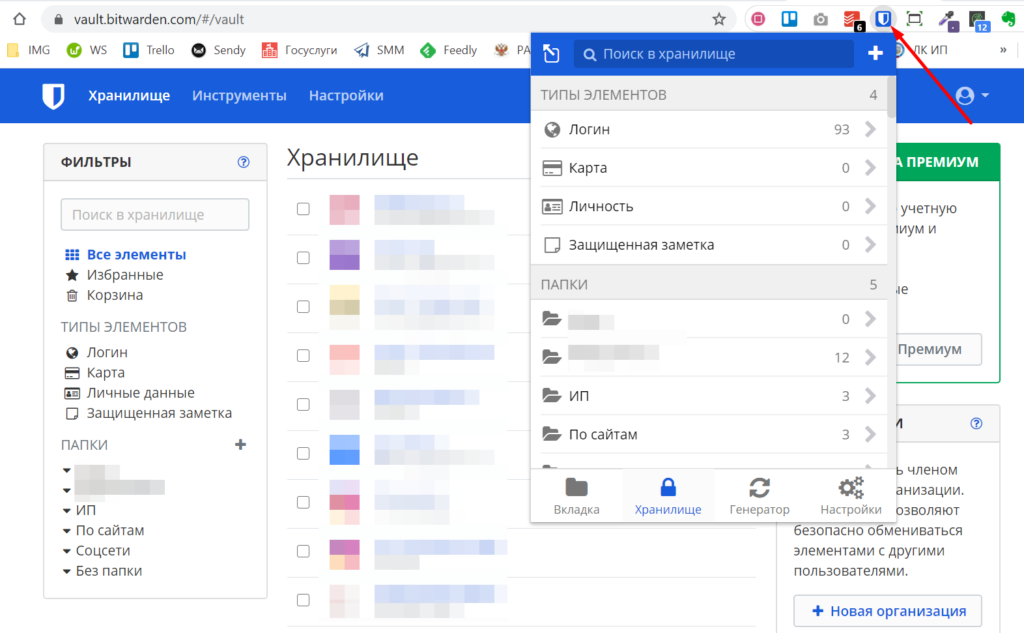 Для хранения коммерчески значимых учетных данных лучше использовать проверенные сервисы с хорошей системой безопасности. Например, в Bitwarden вам нужно запомнить один мастер-пароль, который вводится каждый раз при входе в веб-интерфейс, браузерное расширение, мобильное или десктопное приложение. Все остальные пароли, в том числе от аккаунта Google, хранятся в системе. Установив браузерное расширение, можно пользоваться автозаполнением так же, как и с сохраненными паролями в браузере Google Chrome.