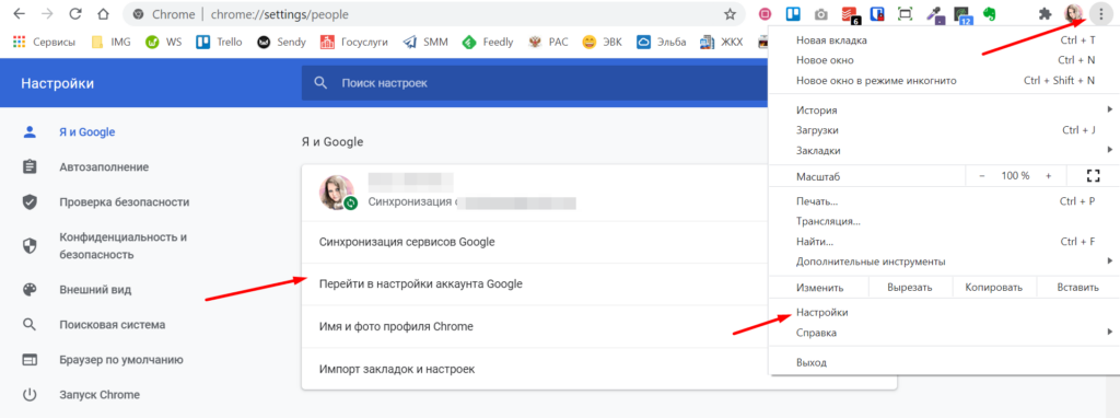 Чтобы настроить такую защиту, зайдите в настройки аккаунта Google: кликните на три точки в правом верхнем углу браузера и выберите пункт «Настройки». На открывшейся странице кликните «Перейти в настройки аккаунта Google».