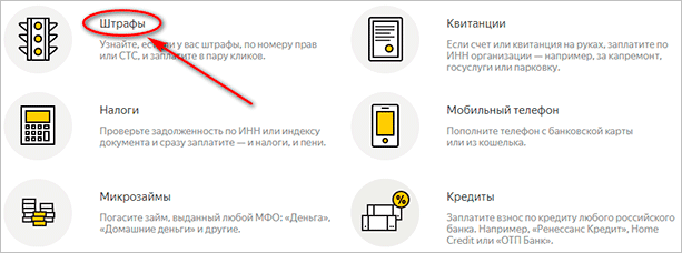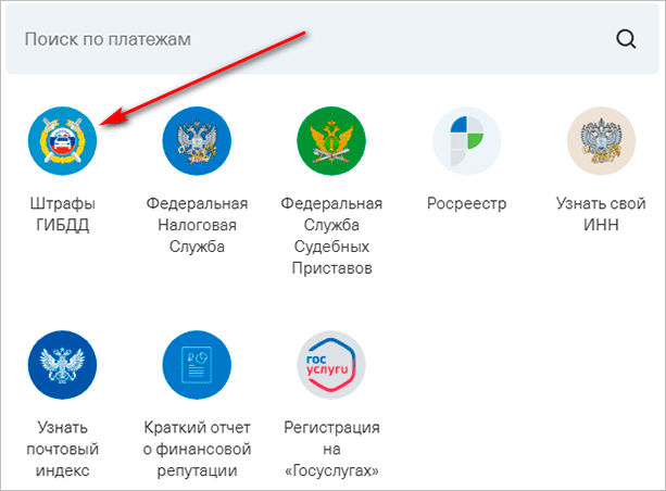 Шаг 1. Выберите во вкладке “Госуслуги” категорию “Штрафы ГИБДД”.