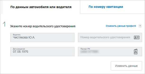 Шаг 2. Осуществите поиск по реквизитам или по своему номеру водительских прав.