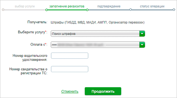 Шаг 2. Заполните свои данные. Банк рекомендует внести сведения в оба поля формы. По номеру регистрации он найдет нарушения, которые зафиксировали камеры видеонаблюдения. По номеру прав – автоштрафы от инспектора.
