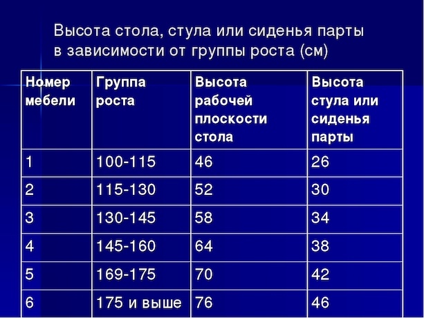 4. Мебель должна соответствовать росту ребенка (см. рисунок).