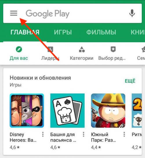 Шаг 2. На главной странице откройте основное меню (иконка в виде трёх полосок).
