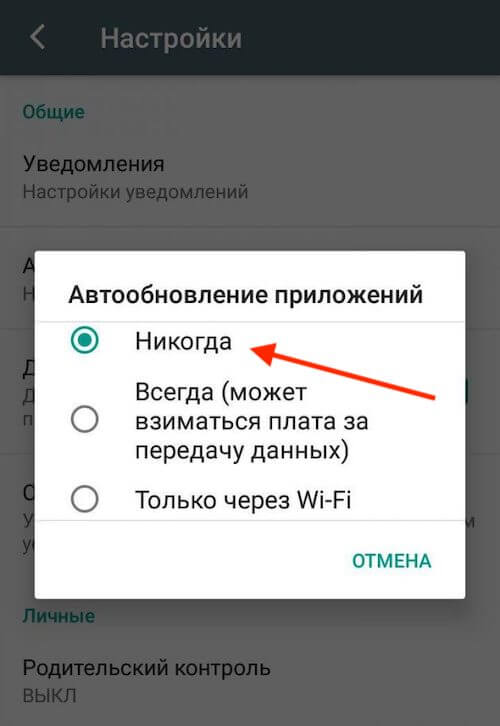 Шаг 4. Откройте «Автообновление приложений» и выберите «Никогда».