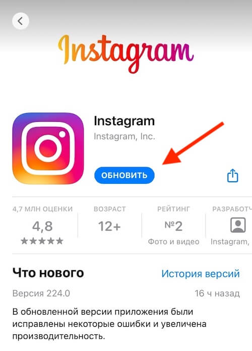 После этого, если вы уверены в стабильности новой версии приложения, можно обновить Инстаграм вручную.