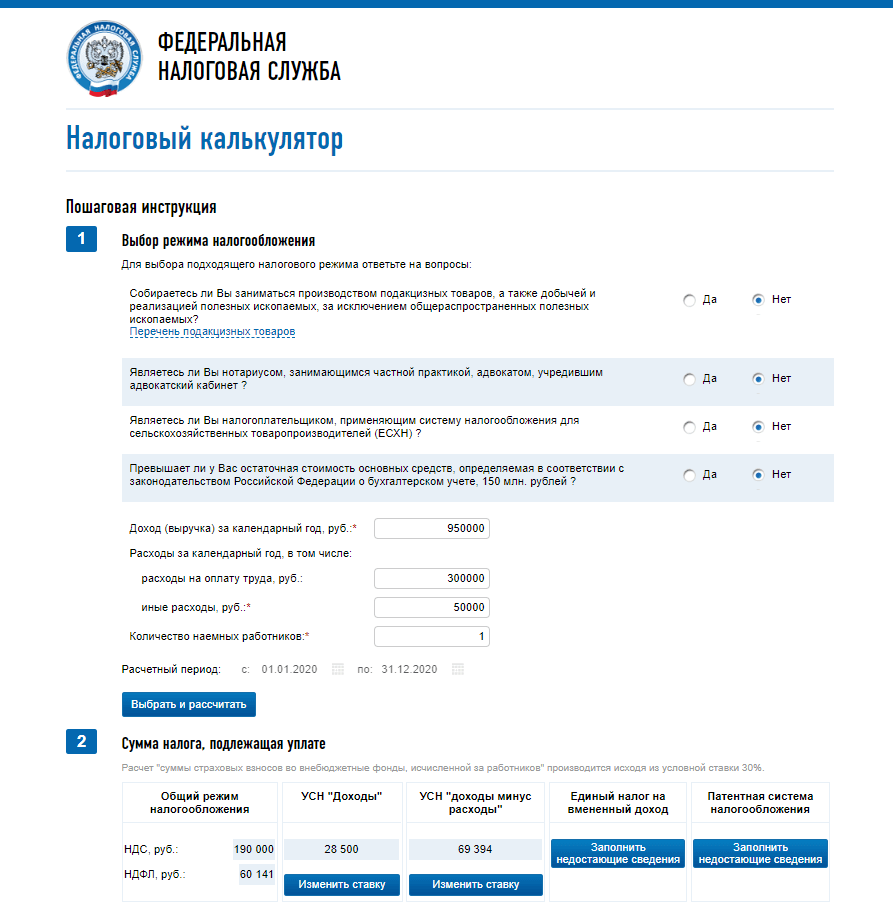 Если не можете выбрать подходящий налоговый режим самостоятельно, воспользуйтесь налоговым калькулятором на сайте ФНС. Он поможет все быстро рассчитать.