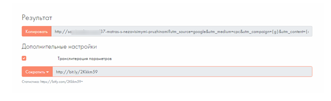 После выполнения этого действия сервис выдаст размеченную ссылку: