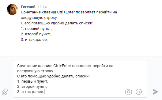 Комбинации Shift/Ctrl+Enter также работают в других социальных сетях и десктопных версиях мессенджеров.