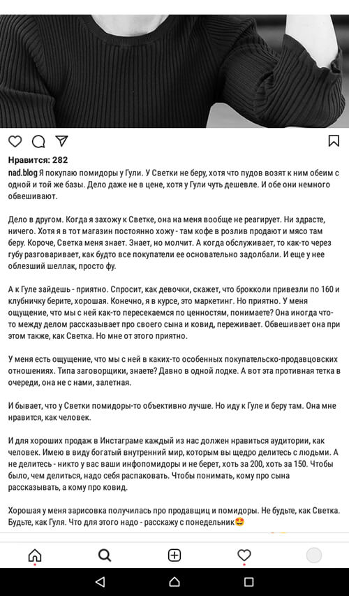 Инстаграм уже давно перестал быть просто визуальной площадкой для размещения фото. Это полноценный блог, где тексты под фото не менее важны, чем сами фото. Но одни посты хочется читать до конца, а другие не вызывают интереса. Почему так?
