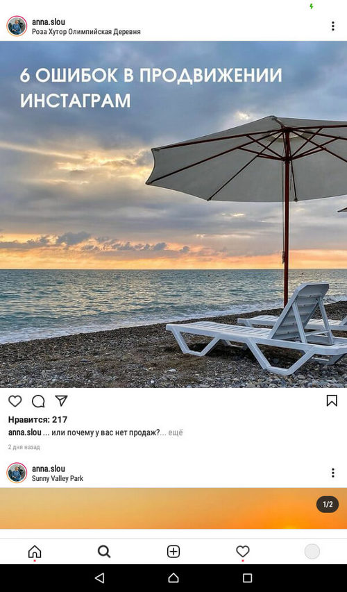 Альтернативой заголовку в тексте может быть заголовок на фото. А в тексте пишем продолжение мысли. Пример — на картинке написано «6 ошибок в продвижении Инстаграм». Сам текст начинается со слов «…или почему у вас нет продаж?».