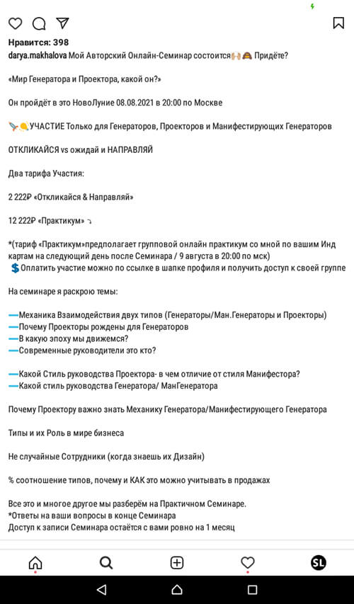 В продающем посте заключительная часть направлена на совершение целевого действия (покупка, запись на услугу/вебинар, подписка). В информационном и развлекательном — на активность аудитории (для этого пишут вопросы в конце поста или предложение поделиться своим мнением/опытом).
