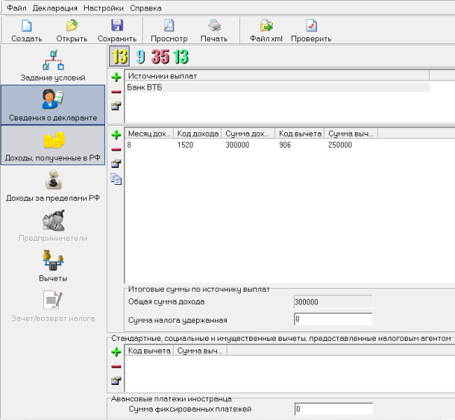 - Вводим сумму дохода и вычет.