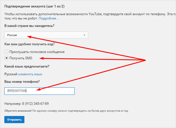 Стоит обратить внимание, что в год по одному телефонному номеру на YouTube можно подтверждать не более 2 каналов.