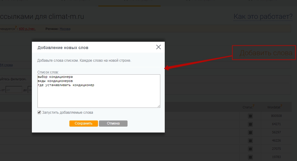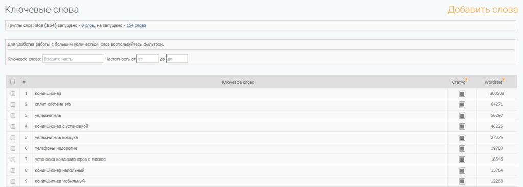 После того как система подберет ключевики, не спешите запускать парсинг площадок. Пройдитесь по списку собранных фраз и исключите нерелевантные, если такие будут.