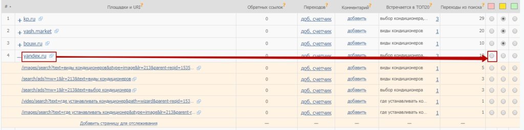 На этом этапе выберите ресурсы, подходящие для размещения ссылок, а также уберите лишние. Для этого просмотрите их и первым делом пометьте красным те, размещение на которых невозможно.