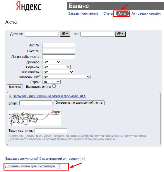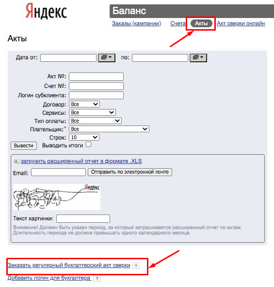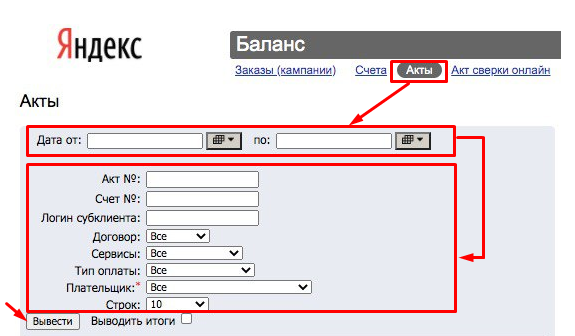 - Перейдите на страницу «Акты» в Яндекс.Балансе.