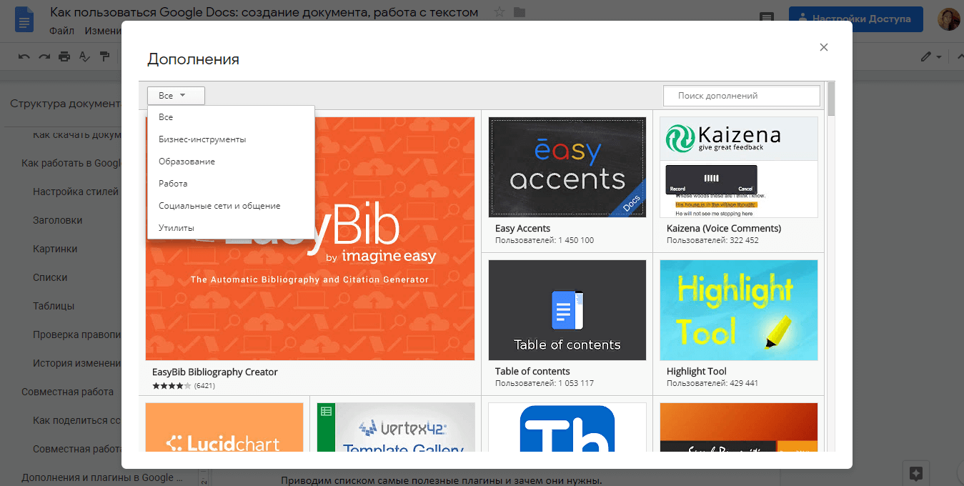 Дополнения и плагины в Google Документах