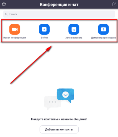 В приложении можно начинать конференции, подключаться к чужим, планировать будущие встречи, переписываться с участниками.