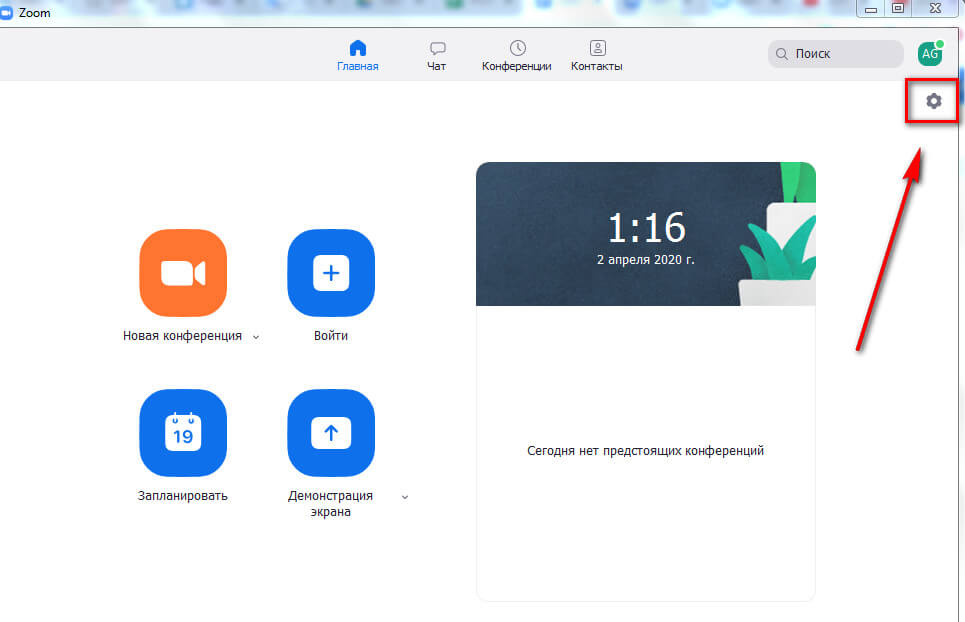 Если вы планируете использовать Zoom ежедневно – настройте автоматический запуск программы при загрузке Windows. Для этого нужно нажать на значок шестеренки и перейти в настройки.